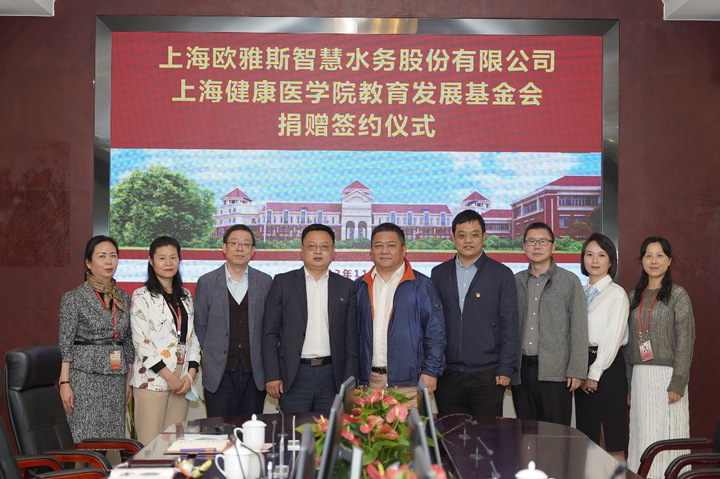11月9日上午,学校教育发展基金会与上海欧雅斯智慧水务股份有限公司(以下简称“欧雅斯水务”)的捐赠签约仪式隆重举行。欧雅斯水务董事长高天放、总经理李信、董事长助理沈怡青;学校党委宣传部部长、教育发展基金会理事长李兆伟,科技处处长莫国民,医学技术学院党总支书记、院长刘敏娟,医学技术学院副院长李延飞,产学合作处科长谭燕出席捐赠签约仪式。仪式由教育发展基金会秘书长、校友工作办公室副主任王红主持。