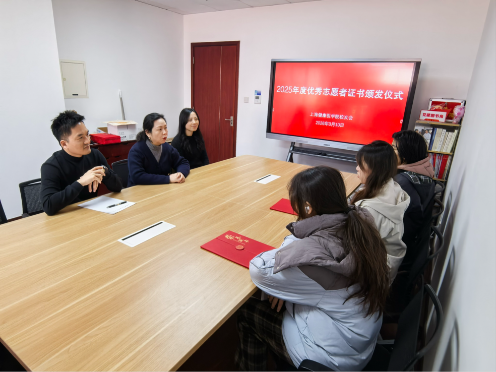 2026310日,上海健康医学院校友会2025年度优秀志愿者证书颁发仪式顺利举办。现场通过座谈交流与集中表彰相结合的形式,复盘年度志愿服务工作,肯定志愿者们的付出与成果,同时梳理不足、明确改进方向,为后续志愿服务提质增效、长效发展筑牢基础。