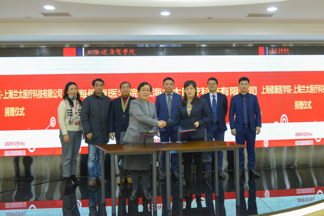 2020年12月18日,我校与上海兰太医疗科技有限公司捐赠仪式在南苑图书馆隆重举行。我校教育发展基金会理事长郑沈芳、副校长沈国芳、医疗器械学院院长胡兆燕、校友工作办公室副主任王红、医疗器械学院副书记吕杰,上海兰太医疗科技有限公司总经理王轶湛、副总经理马俊、副总经理涂勇等以及医疗器械学院的相关老师及同学出席会议。仪式由产学合作处副处长(主持工作)金亮主持。