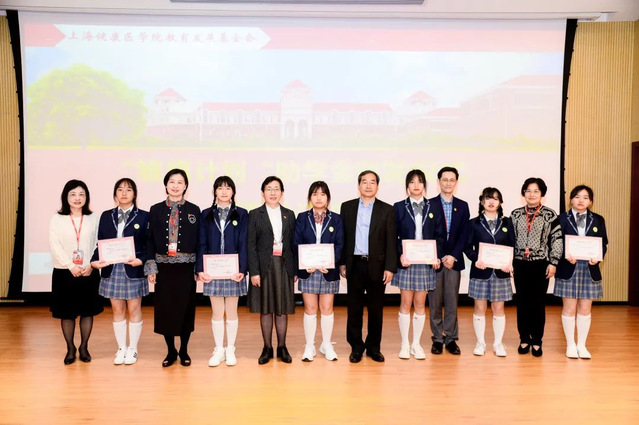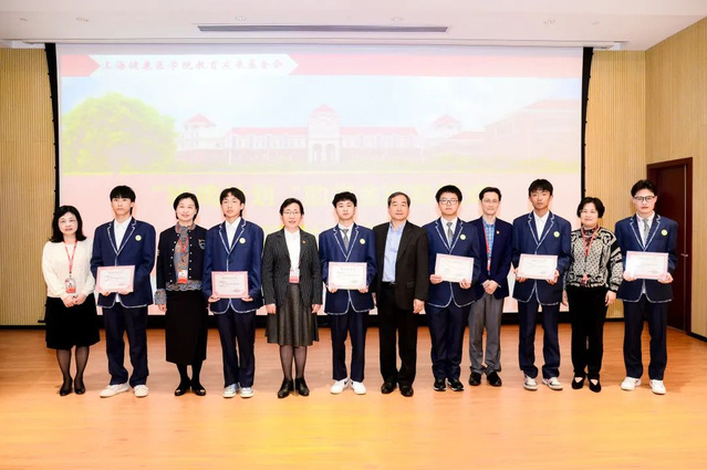 附属卫校党总支副书记、校长汤磊;党总支副书记朱文娟;副校长徐敏共同为学生颁发证书。上海健康医学院产学合作处副处长金亮;校友工作办公室副主任、基金会秘书长王红;晋宁区中等专业学校学生处副主任苏丽辉及相关部门老师参加了会议。
