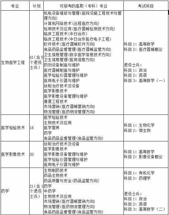 附表:上海健康医学院专升本招生专业、计划数、专业对口要求及考试科目