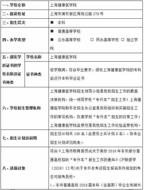 【敲黑板,赶快划重点!】2018年上海健康医学院专升本招生章程