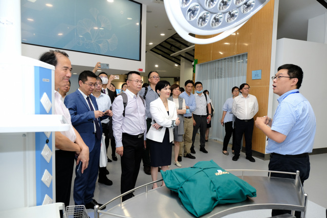 来访期间,嘉宾们参观了学校护管学院实训中心、医疗器械学院实训中心、健康互动实践中心、医学影像学院实训中心。