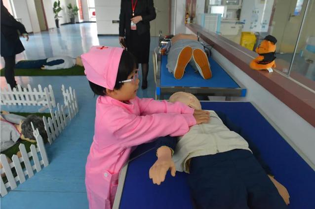 曹丽娜校友一行兴致勃勃地参观了护理实训中心,王红和陈颖陪同。