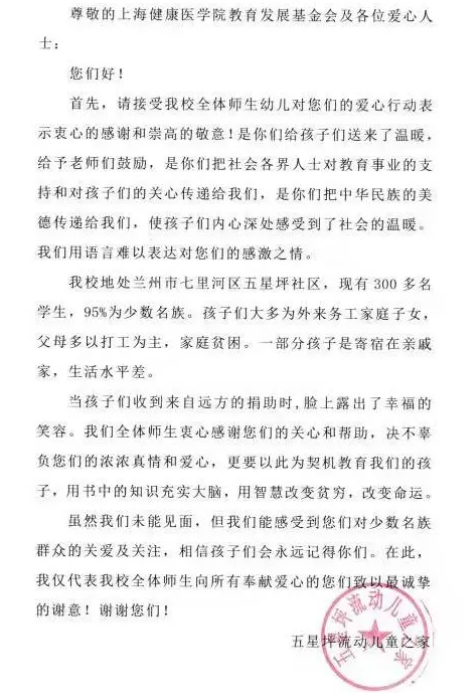 尊敬的上海健康医学院教育发展基金会及各位爱心人士: