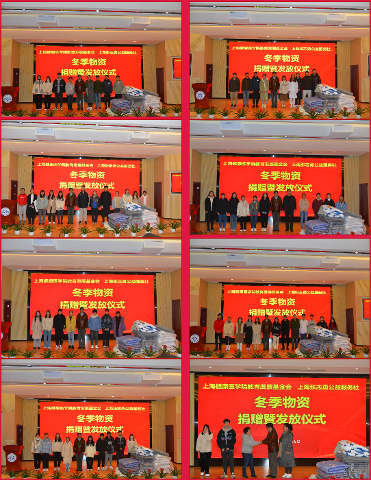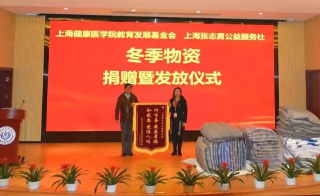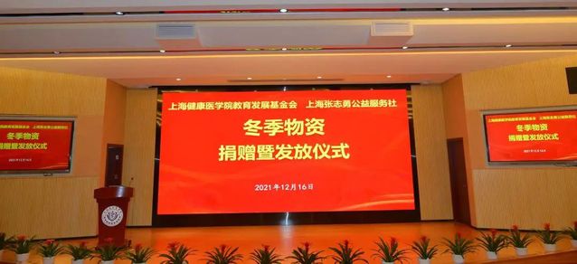 12月16日,上海健康医学院教育发展基金会与上海张志勇公益服务社在上海健康医学院200人报告厅举行了“冬日暖阳”冬季物资捐赠暨发放仪式。各学院分管学生的书记、辅导员和受助学生参加仪式。