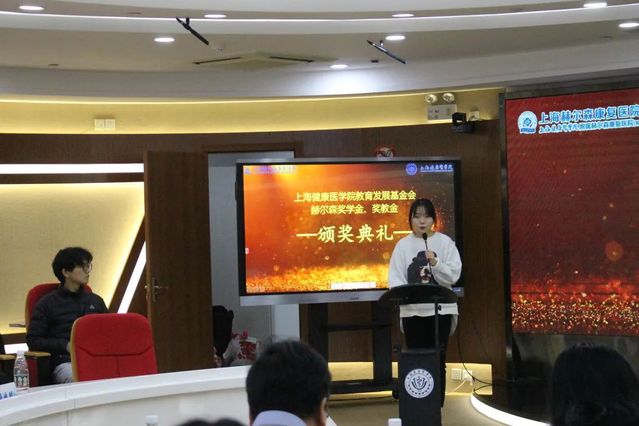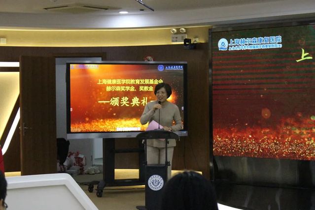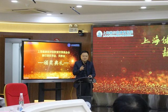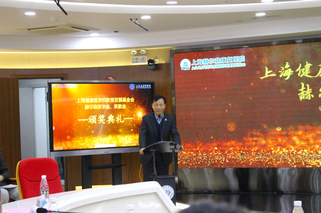 1月10日下午,在南苑图书馆5楼报告厅举行上海健康医学院教育发展基金会“赫尔森”奖学金、奖教金颁奖典礼。上海赫尔森康复医院沈祥开院长、王良意副院长,教育发展基金会理事长、宣传部部长李兆伟康复学院院长、党总支副书记郭琪,党总支书记、副院长王红,教育发展基金会秘书长、校友工作办公室副主任王红和获奖师生出席典礼。康复学院常务副书记蒋晓明主持会议。