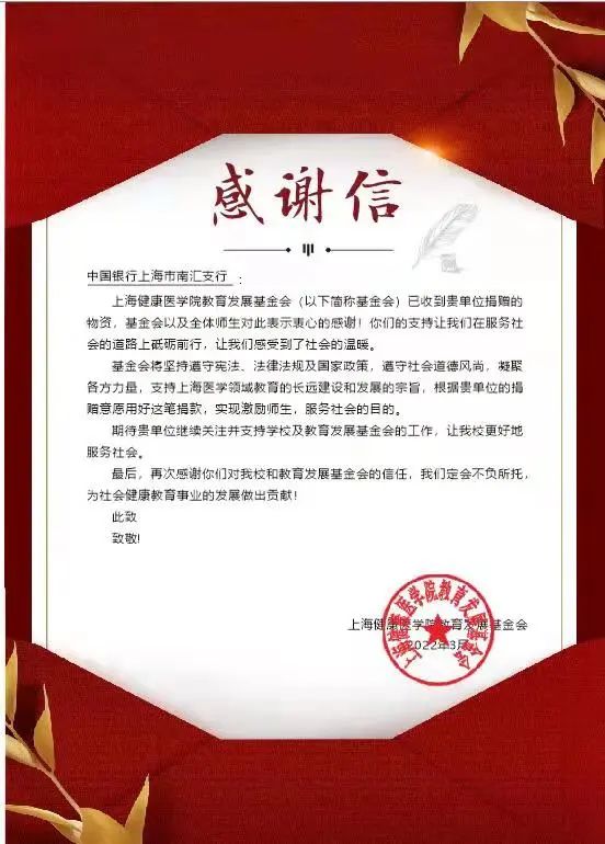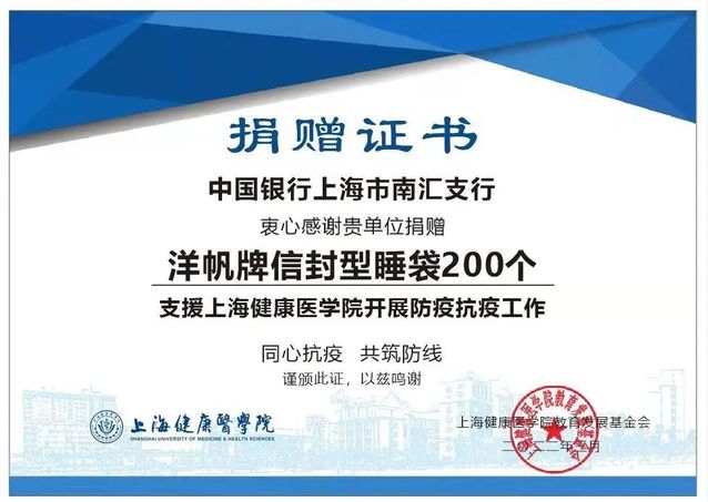 抗“疫”形势严峻,牵动各方关心。健康园里,一幕幕温馨的画面不断涌现。中国银行上海市南汇支行心系我校师生防疫和生活所需,第一时间联系我校献出爱心,对抗“疫”一线的师生们表达了真诚慰问,并慷慨捐赠200个信封型睡袋支持学校师生。“岂曰无衣,与子同裳”,前线抗“疫”人员的冷暖时刻挂记心上。