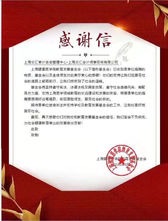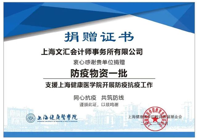 “文”驰健康 “汇”聚温暖丨上海文汇会计师事务所有限公司捐赠物资助力我校疫情防控