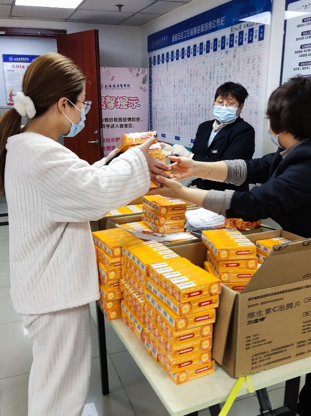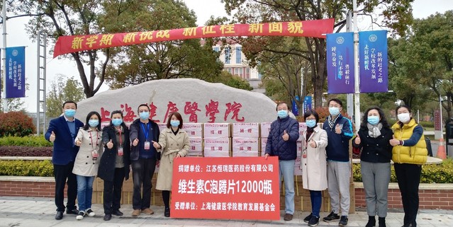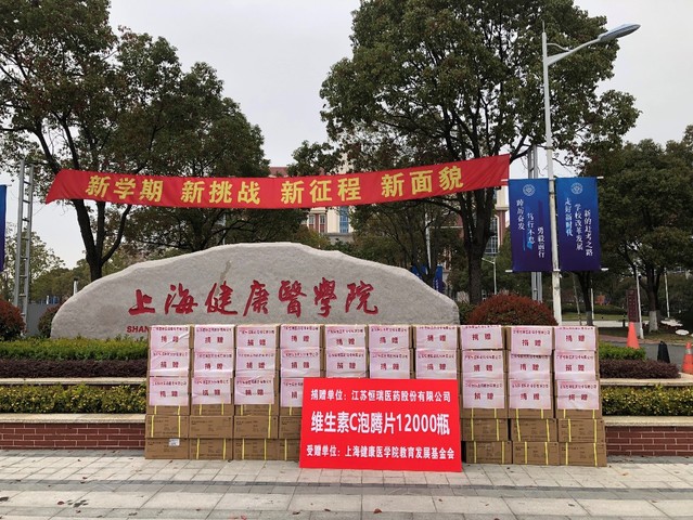 在得知学校封闭式管理后,江苏恒瑞医药股份有限公司综合产品事业部刘涛总经理主动联系我校基金会,捐赠12000瓶力度伸(维生素C泡腾片),希望能帮助学子们抵御病毒、增强免疫力。