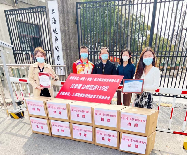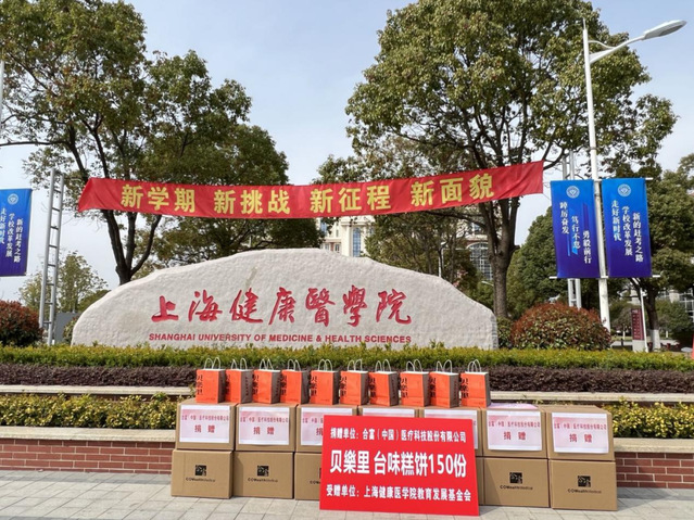 3月16日下午,我校教育发展基金会收到了来自合富(中国)医疗科技股份有限公司的温馨问候,150份新鲜出炉的贝乐里新台式糕点带着合富集团的爱心来到了健康园。学校沈国芳副校长及相关职能部门负责人代表学校接收捐赠,沈国芳副校长为合富集团颁发感谢信和捐赠证书。