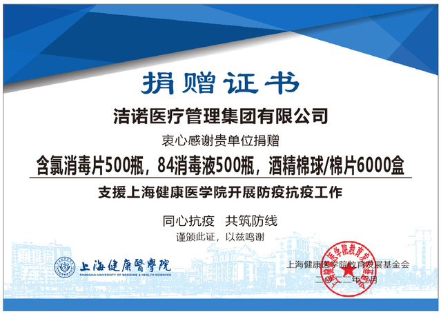 风雨兼程,同心抗疫——洁诺医疗管理集团有限公司捐赠我校防疫物资