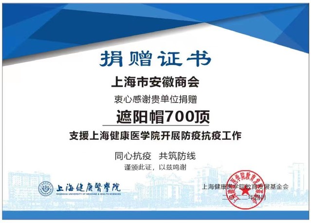 沪皖同心 齐力抗“疫”丨上海市安徽商会向我校捐赠遮阳帽