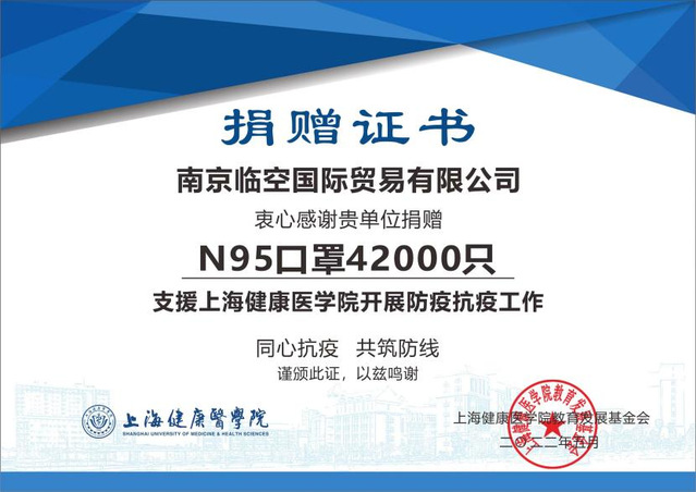 5月25日晚,南京临空国际贸易有限公司向我校捐赠42000只N95口罩,助力我校疫情防控,为学生返乡的安全提供保障。只言片语,难以表达援助之情,相信阴霾过后,我们必将迎来热烈盛夏,所有美好将如约而至。
