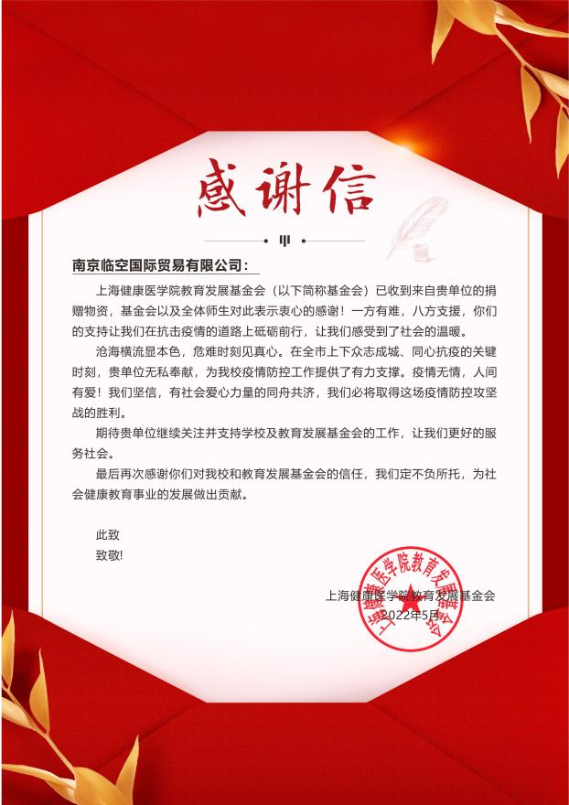 百里挂念,守望相助|南京临空国际贸易有限公司捐赠我校防疫物资